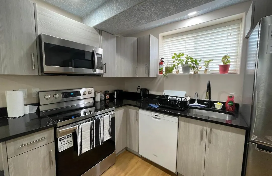 This apartment also has a fully equipped kitchen with a microwave, an electric kettle, and a refrigerator. Getting to Calgary airport will take 15 minutes by car.